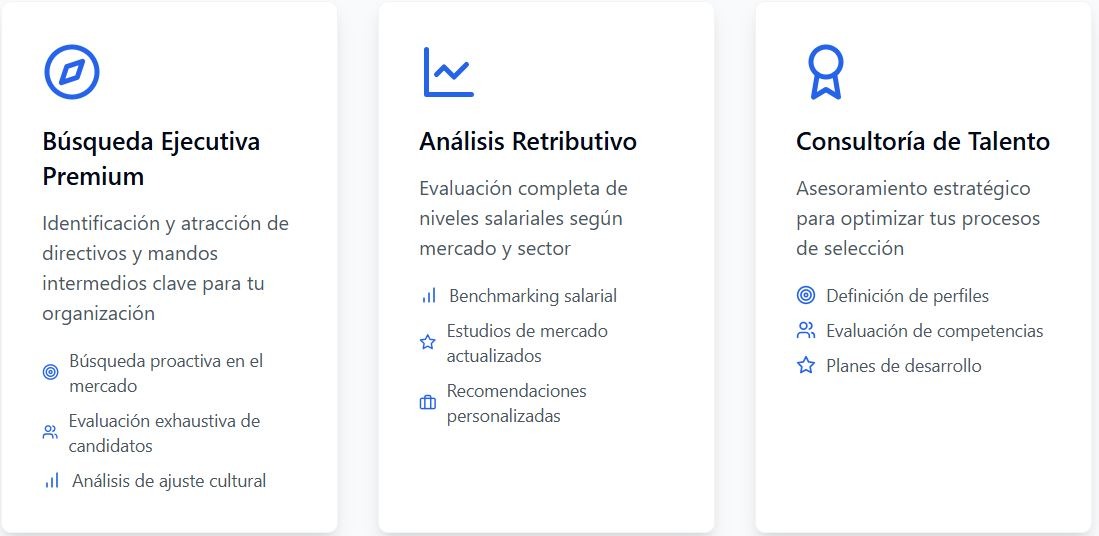 Servicios de selección de personal boutique y consultoría de planes de carrera.